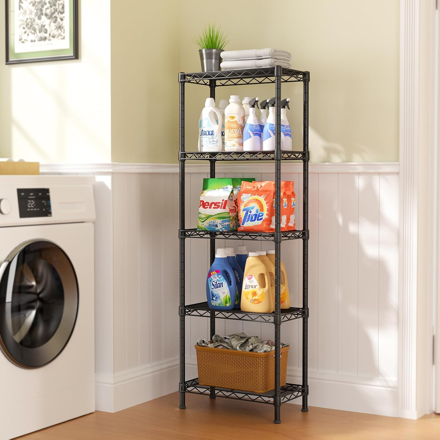 Storage shelving unit with adjustable leveling feet for more convenient field application,kitchen,bathroom,closet pantry,bedroom, living room, dining room,home,office,bathroom shelves laundry room organization etc