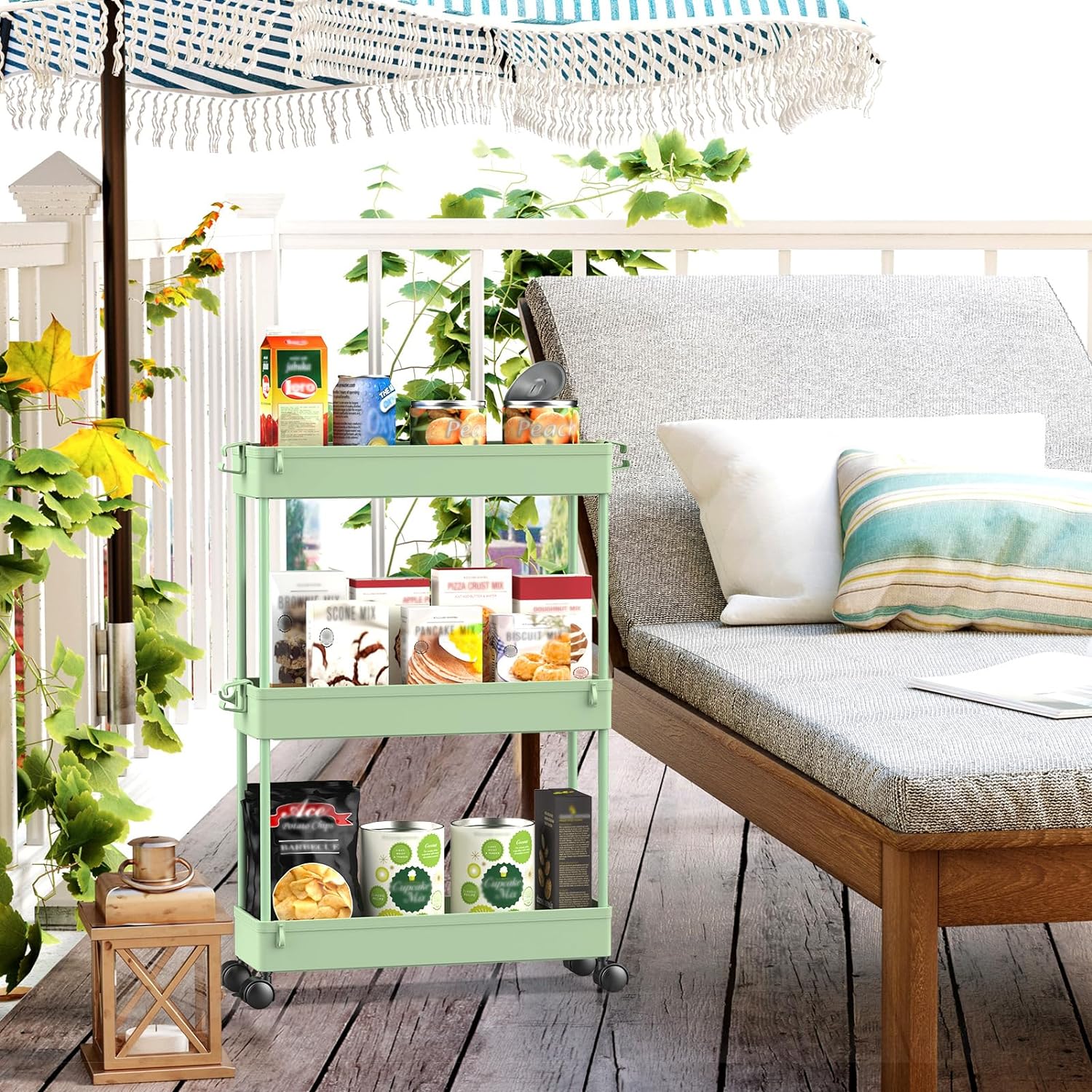 [Flexible 3-Tier Storage Cart with Removable Shelves] This slim rolling cart features 3 removable shelves, allowing you to customize the storage layout as needed—use 3 tiers for maximum capacity. Its slim feature make it easily fit in narrow spaces in your home. Ideal for bathrooms, kitchen, garage, closet, laundry rooms, offices or between appliances.