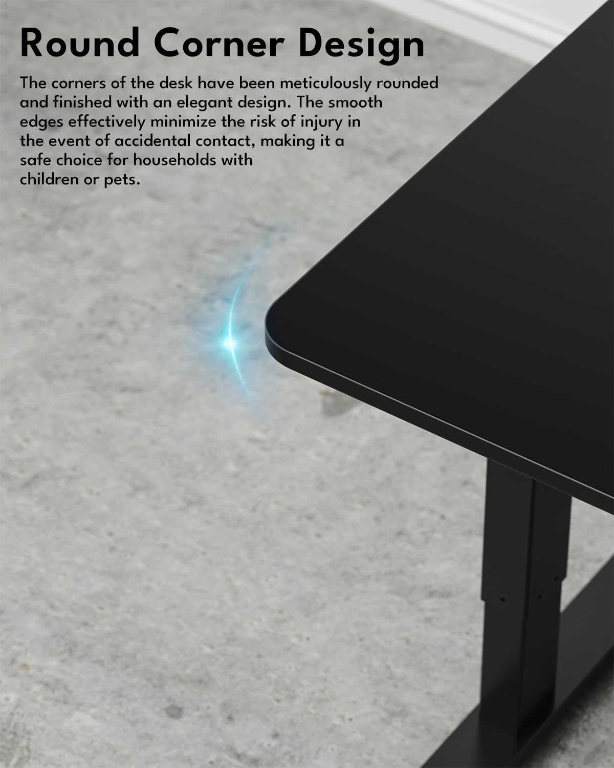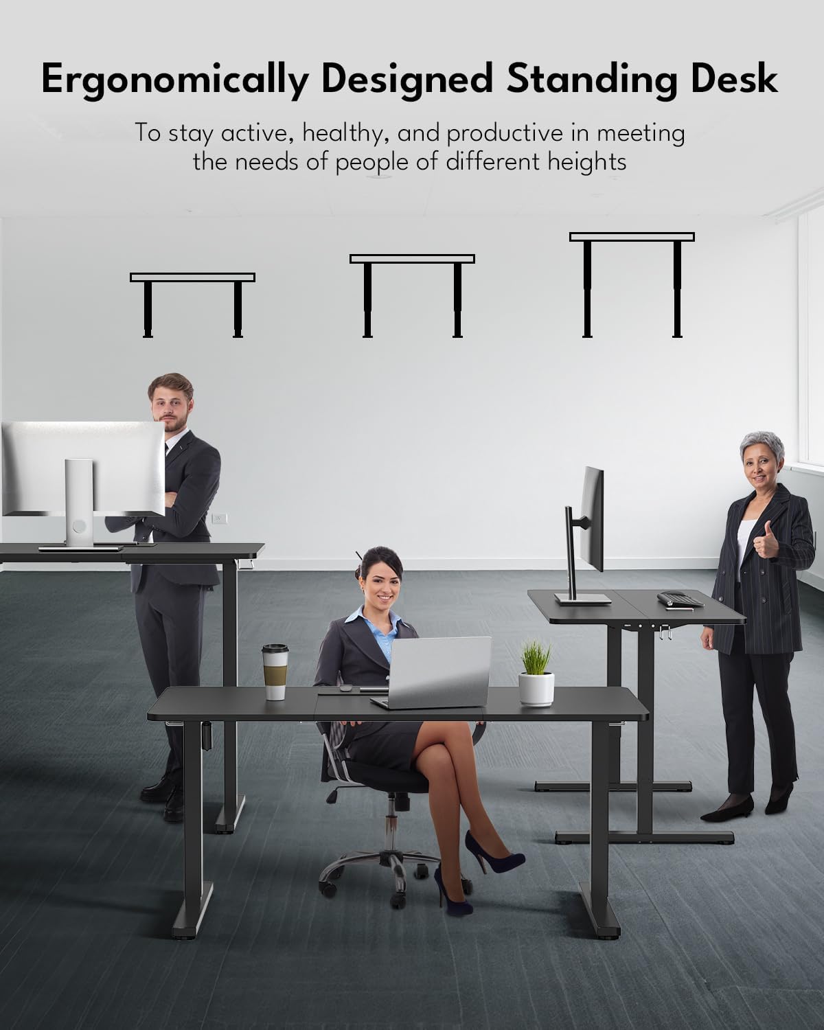 Memory Height & Quiet motor: The stand up desk features two programmable memory height buttons, enabling users to effortlessly alternate between heights of 27.9 inches and 46.4 inches at a speed of 25 mm/s. It allows for the recording of personalized standing and sitting heights, ensuring convenient adjustment to the desired fixed height at any time. Additionally, the desk is equipped with a robust yet quiet motor that has undergone 100,000 lift-and-lower tests. This ensures not only safe and stable performance but also consistent quiet operation.
