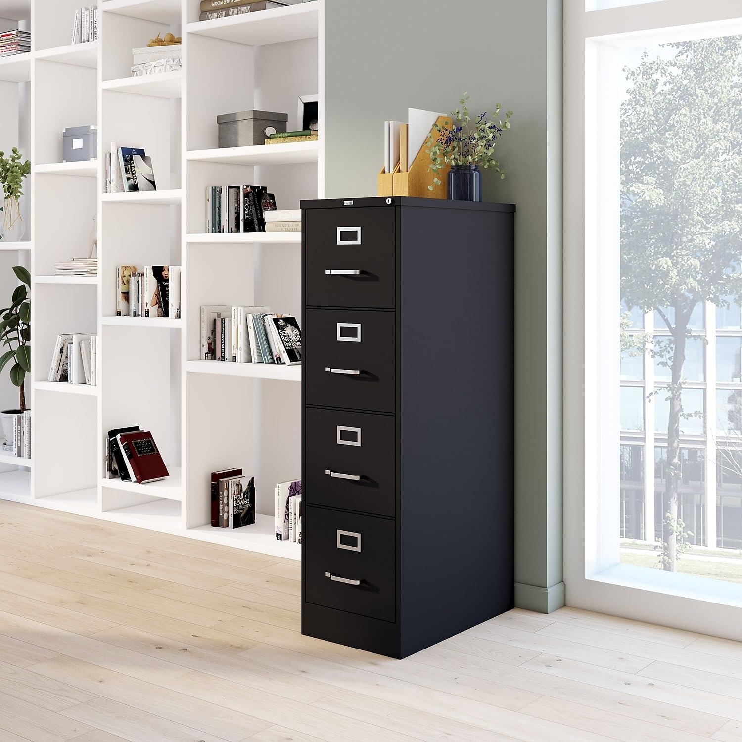 Staples 4-Drawer Vertical File Cabinet Locking Letter Black 25-Inch D