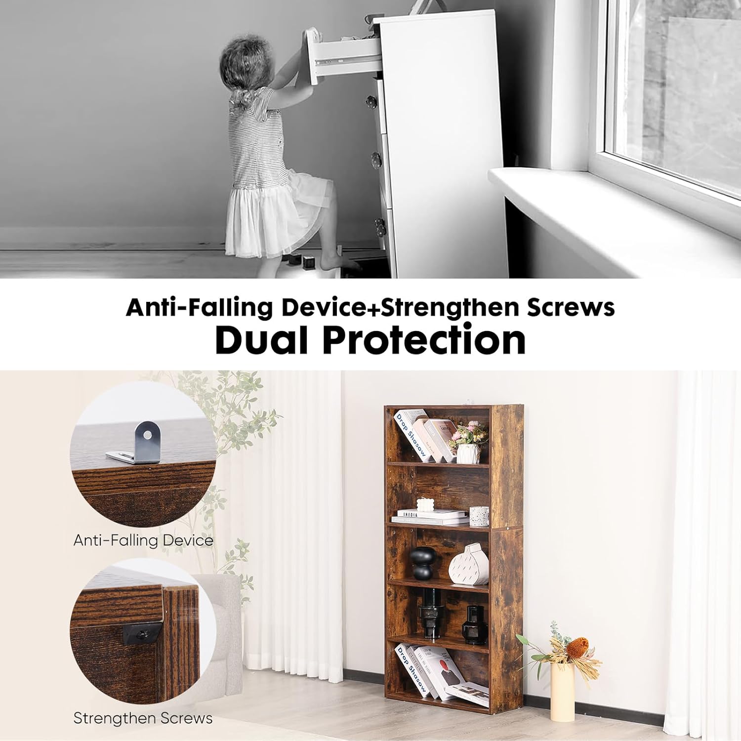 【Safety First – We Mean It!】Your safety matters. That’s why we include an anti-tip metal bracket. Just secure it to your wall, and enjoy total peace of mind. Easy to install, extra sturdy in use!