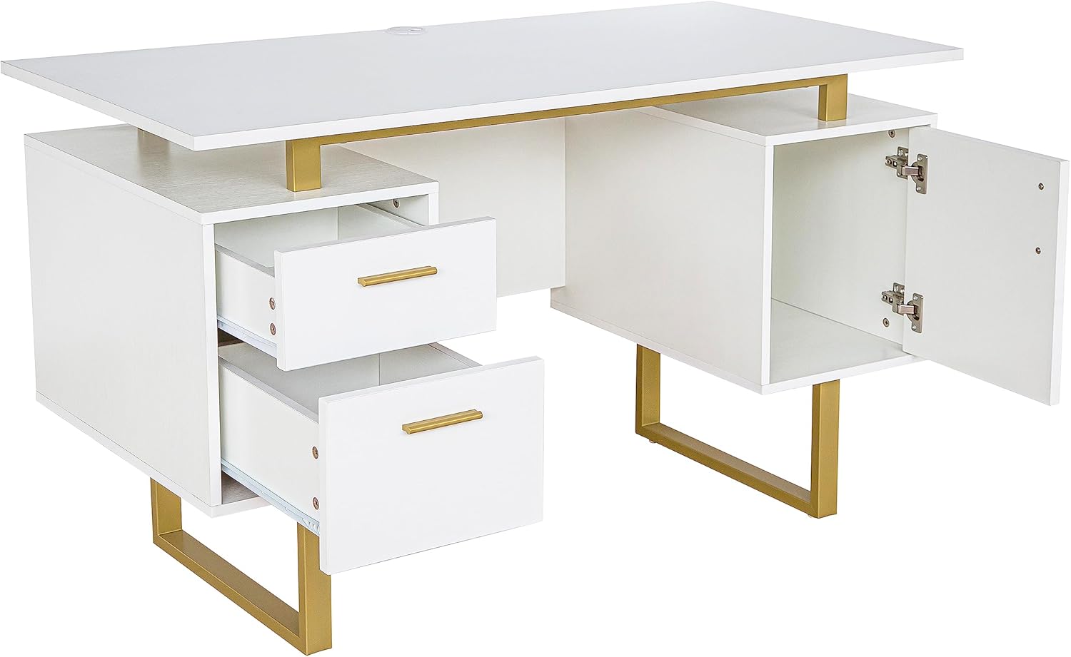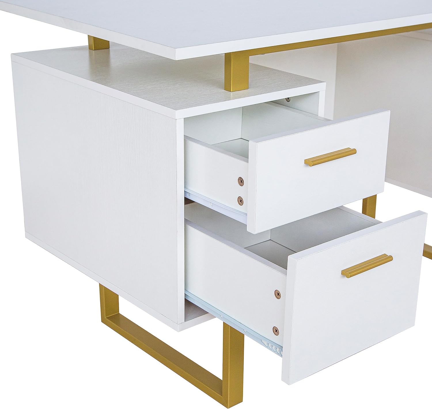 GET STYLISH WITH OUR GOLD DESK: Crafted with clean lines, a floating work surface & durable Gold metal legs, this desk with drawers for home office not only adds pizzaz to your workspace but also ensures long lasting use.