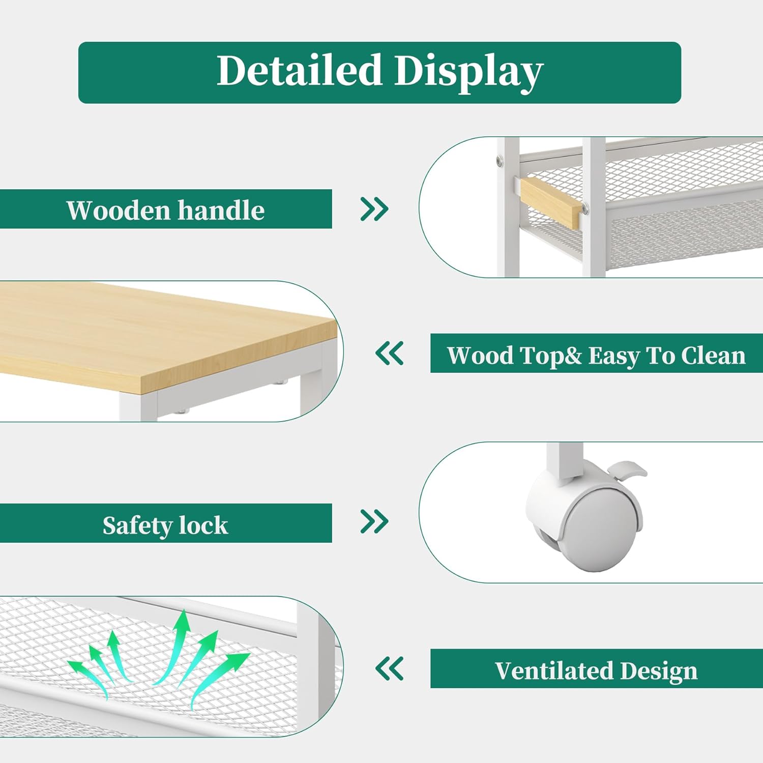 Effortless Mobility & Setup: Four smooth caster wheels let you roll the cart anywhere. Sturdy guardrails on each shelf keep items secure, and the numbered parts with clear instructions make assembly quick and painless