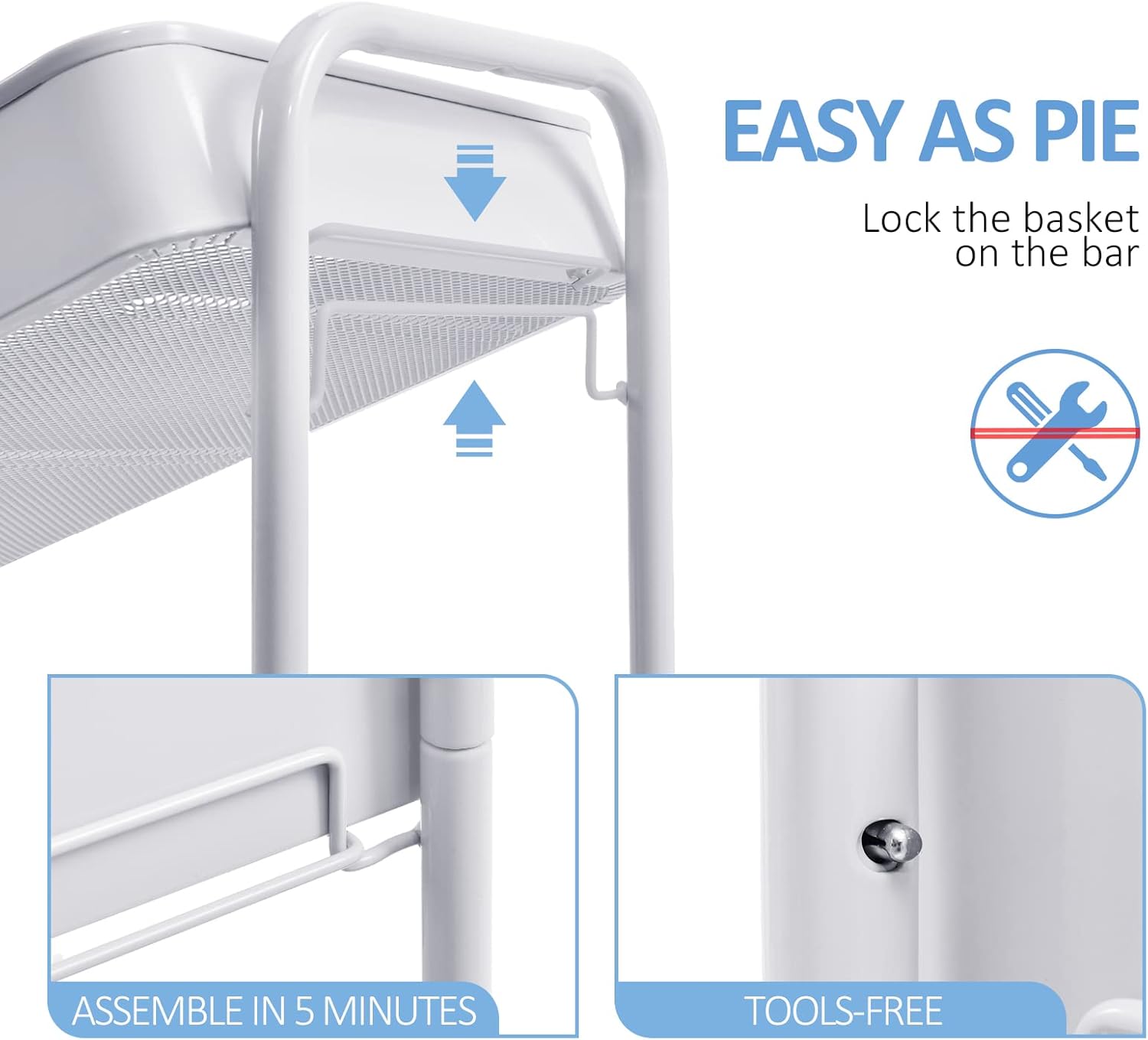 【Easy as Pie & Sturdy Construction】Are you still troubled by watching various screws can’t start? But not this time. The rolling cart assembly does not require any screws and takes only a short time. The heavy-duty steel frame and rust-resistant powder coating makes it durable. The cart can hold up to total 132lbs.