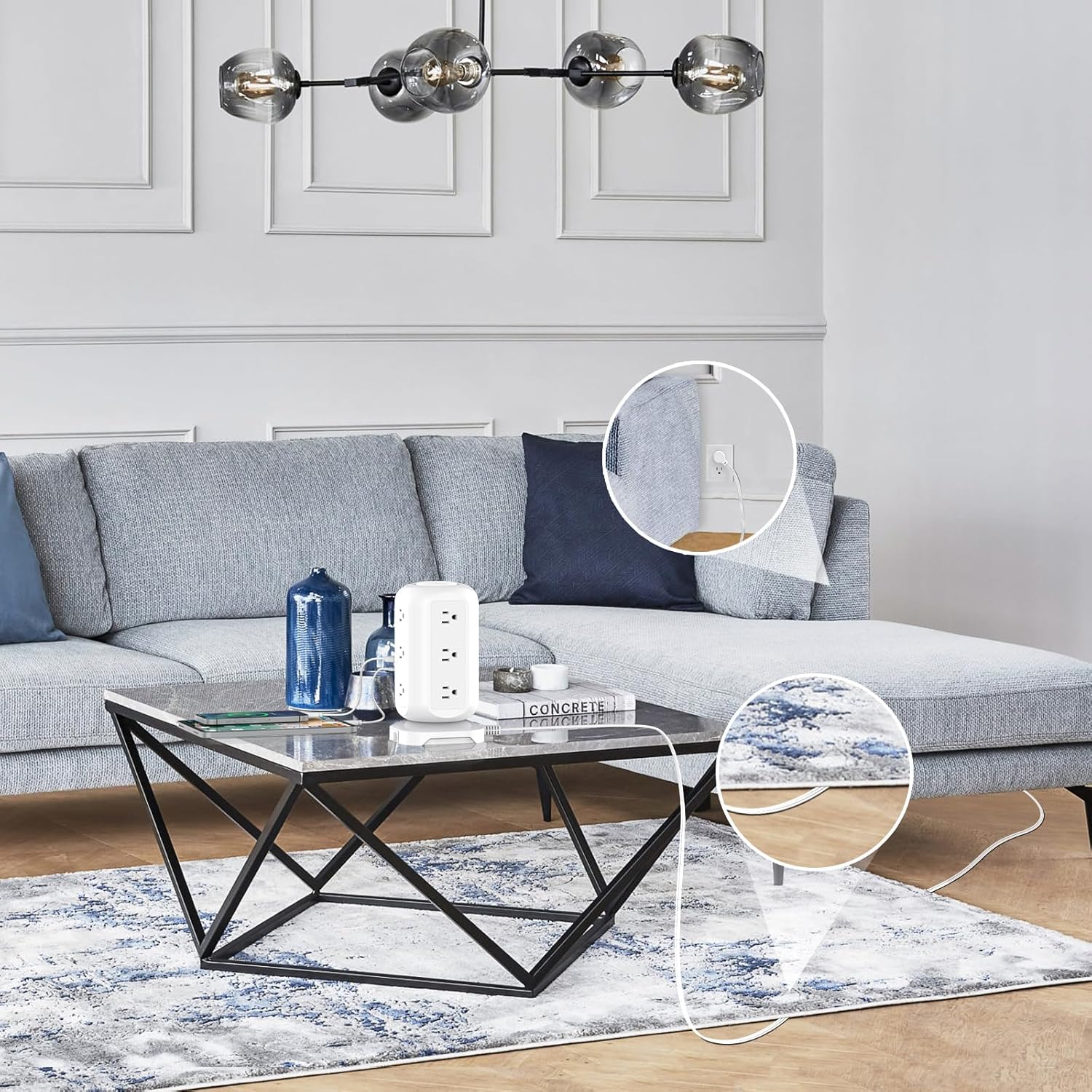 Space-saving unique tower design: AOFO charging station adopts a unique vertical design, and the top adopts a delicate CD pattern design, so that your power strip are not monotonous, and you do not need to worry about the large plugs blocking each other, which helps you save space and is beautiful ;Choose this office supply to keep your desktop clean and beautiful