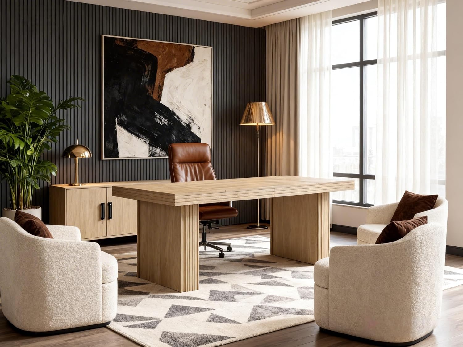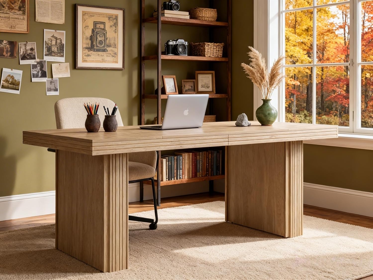 Versatile Style Compatibility: Featuring a smooth, sophisticated silhouette and a light wood finish, this modern executive desk blends seamlessly with modern, farmhouse, and a variety of interior designs, balancing refinement and relaxed comfort