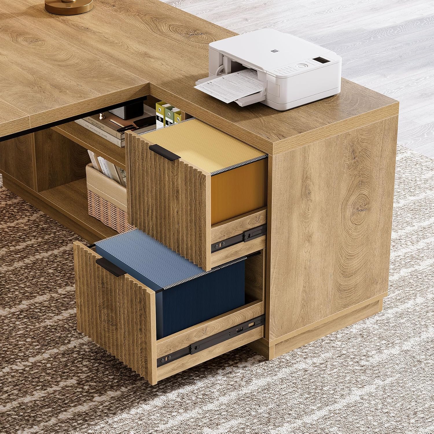 Stable Design: This l shaped desk with storage is crafted from premium engineered wood, blending robust structural integrity with timeless business elegance to withstand heavy use. Whether you’re setting up a home office or a professional workspace, this office desk with drawers combines functional flexibility with a refined design