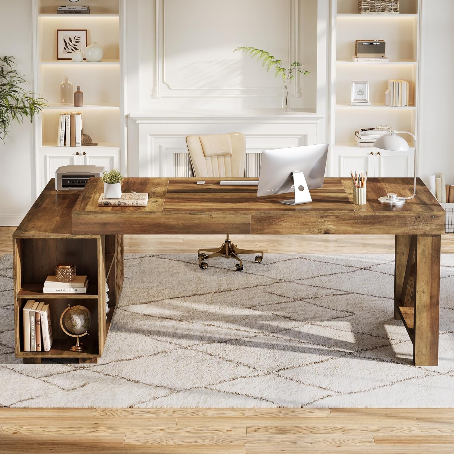 Versatile Use: This L-shaped boss desk is highly versatile, ideal as a computer desk, office desk, or gaming desk. Its spacious surface can accommodate multiple monitors, a keyboard, and other essentials, making it a practical and multifunctional choice