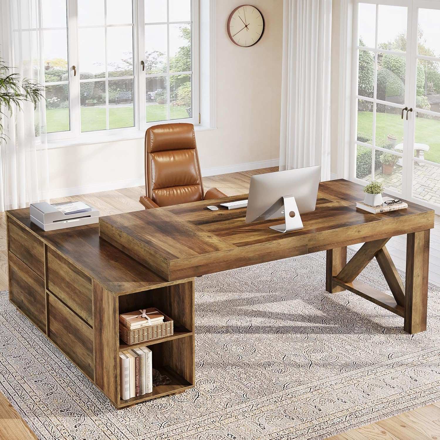 Solid Construction: The 63-inch executive desk is made of high-quality MDF. The thickened frame provides rock-solid stability, ensuring years of reliable use even with heavy daily workloads