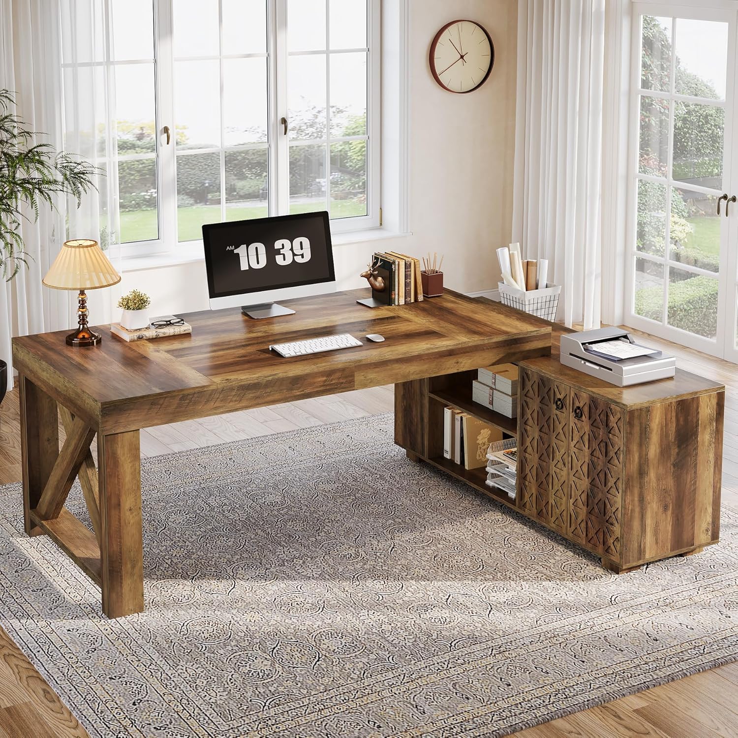 Tribesigns 63″ L-Shaped Executive Desk with 55″ File Cabinet for Home Office