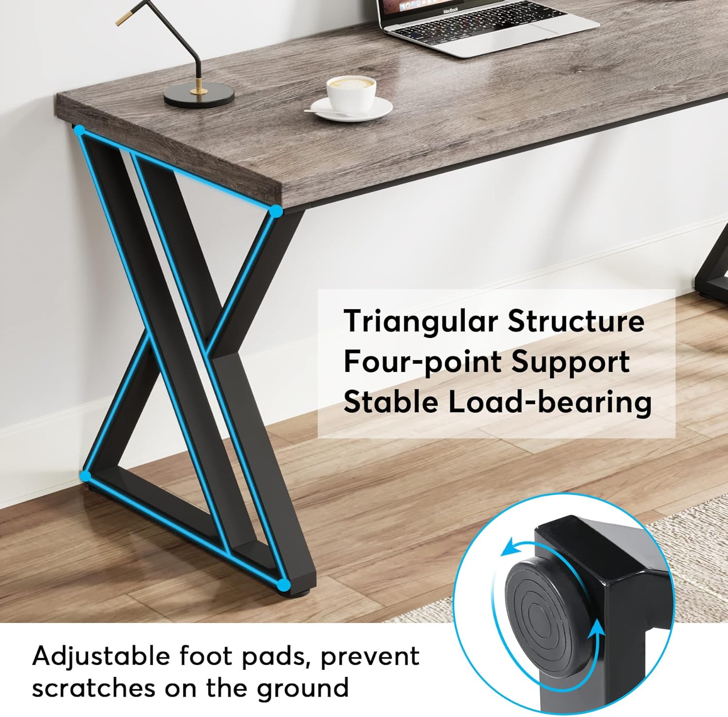 Spacious Desktop & Leg Room: Measuring 29.52” H x 55.12” W x 23.62” D overall, the large desk surface allows plenty of room for laptop, books, office supplies and paperwork, and the smooth top makes for easy cleanup and writing. Ample space under desk ensures any chair can fit under desk, and allows your legs relax after long day of working