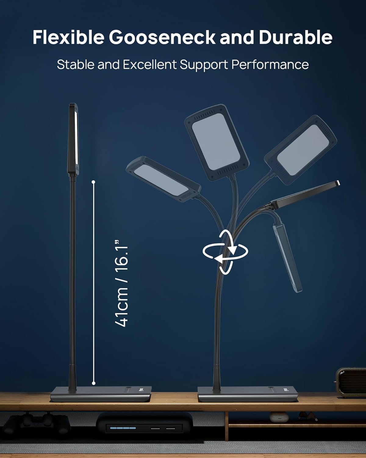 Flexible Gooseneck Lamp: This table lamp features an ultra-slim base (0.63” thick) and a low-profile design, fitting perfectly with your home or office decors. The flexible gooseneck (16.1”, fully extended) allows you to bend the lamp towards wherever you want