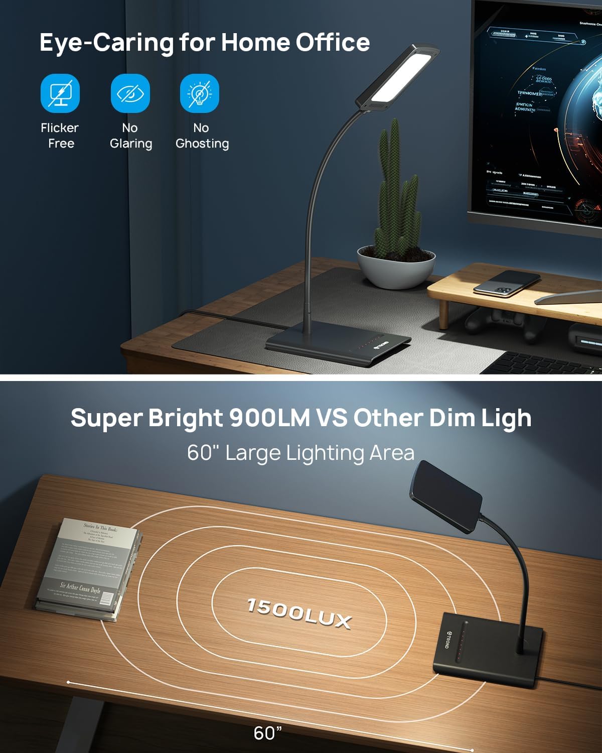 3 Color Modes Task Lamp: Long press the LED power indicator to activate 3 distinctive lighting modes. Choose the right color temperature with this desk lamp to meet your various lighting moods – Working 6000 K, Reading 4500 K, Relaxing 3000 K