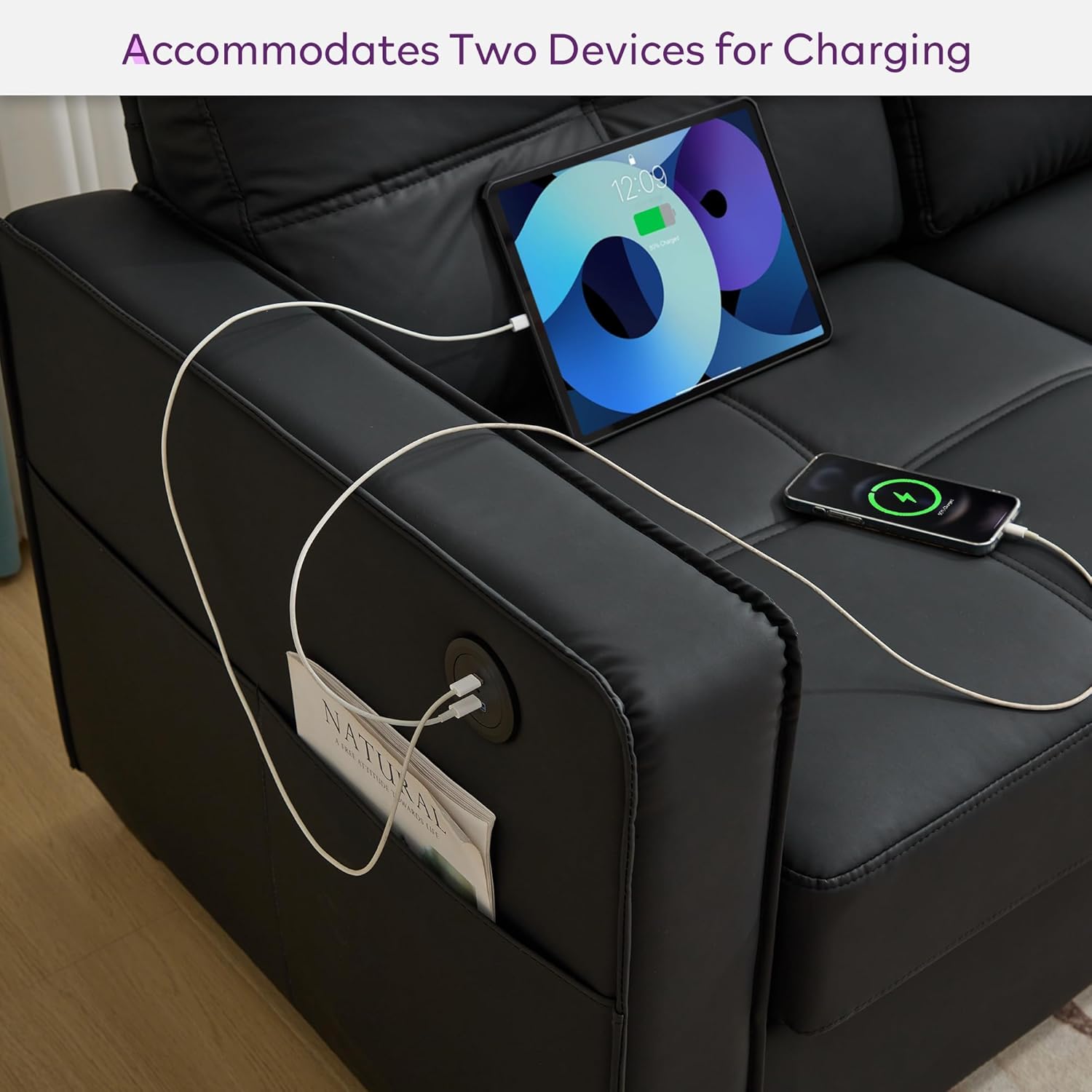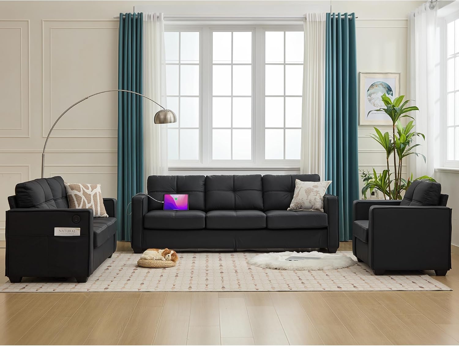 【Perfect Contemporary Sofa – 3 Piece Living Room Sets】TYBOATLE black faux leather sectional couches has a quality aesthetic design. This comfortable sofa is ideal for any space, with a wide sofa arm shape, convenient arm side pockets, and a highly technological USB charging feature, a sofa that is a perfect blend of modern and mid-century style that can be placed in living rooms, offices, RVs, apartments, and more.