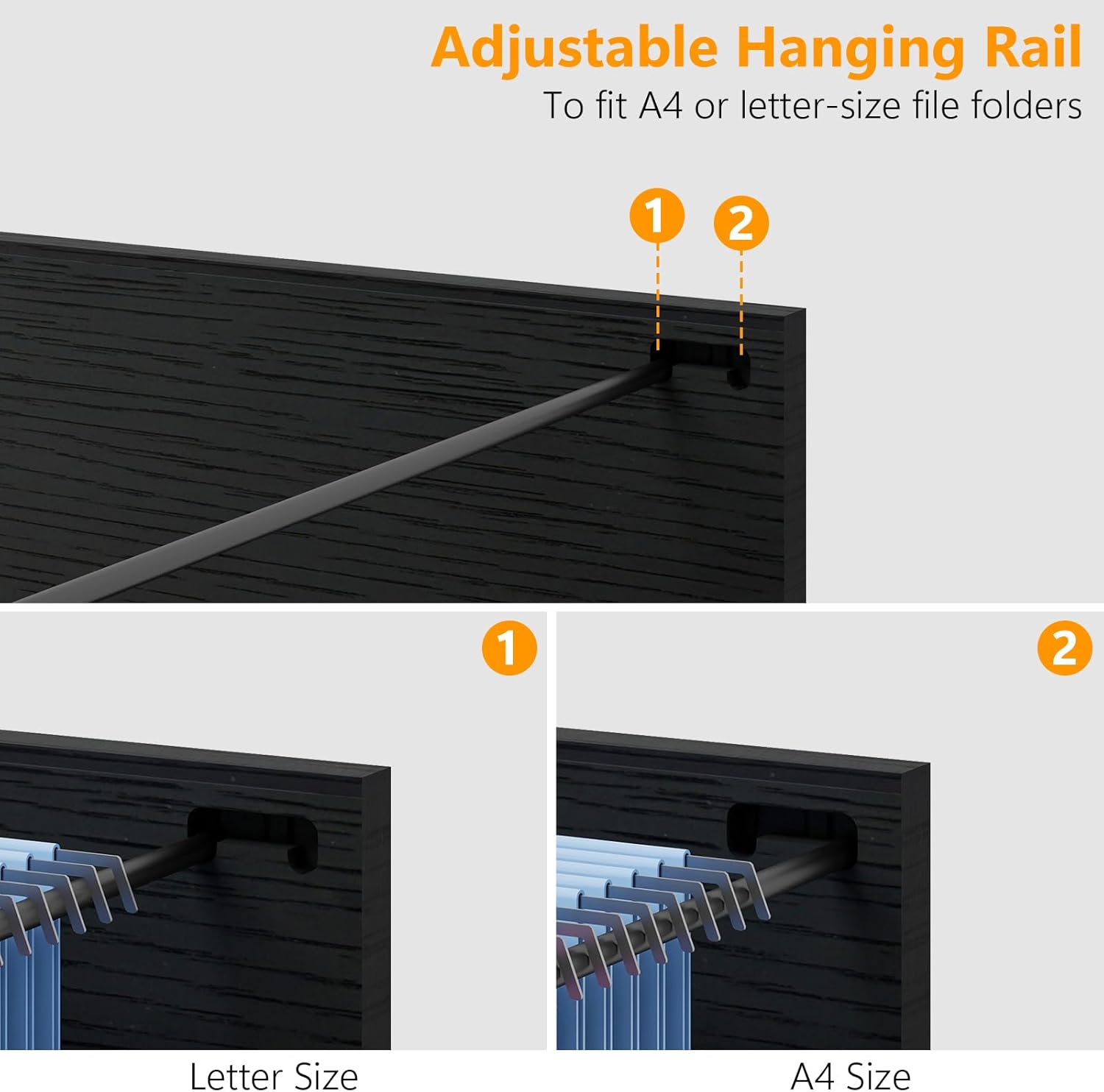 【2 Roomy File Drawers】The two spacious drawers offer ample storage space for files, allowing for the orderly storage of A4 or Letter-sized file and other office supplies. This helps you easily sort out various files and materials, bid farewell to a cluttered desktop, and makes your office or study area neat and efficient.