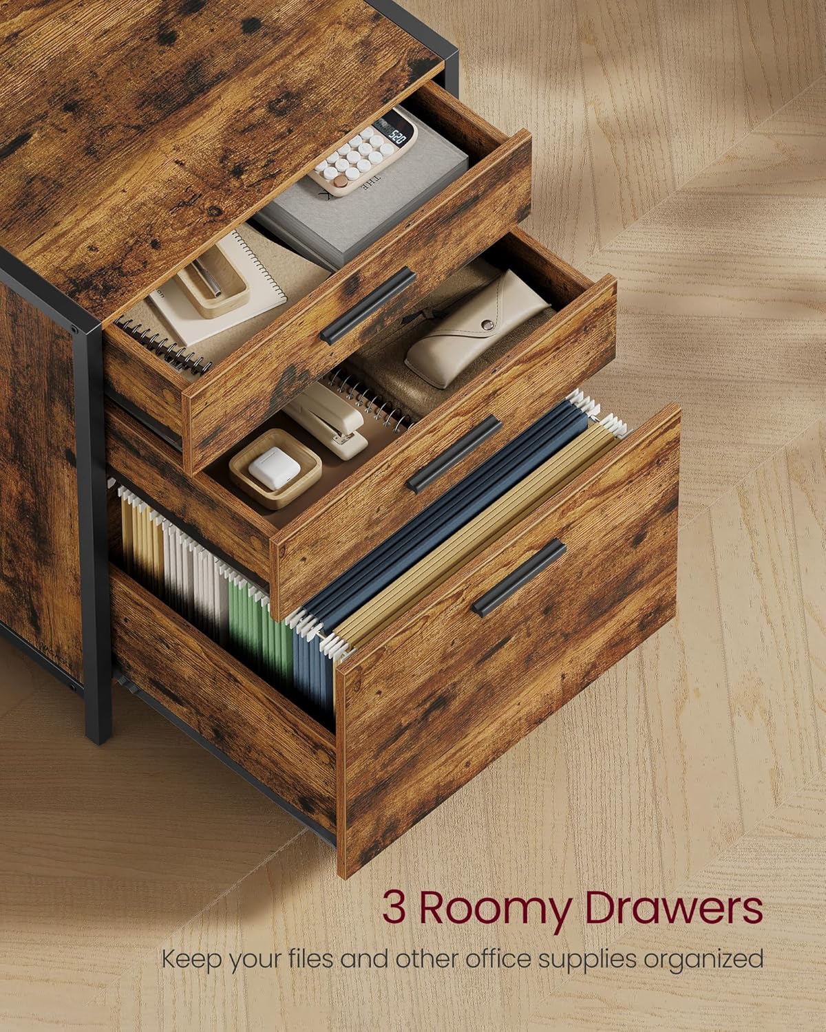 【ORGANIZE ALL YOUR FILES】Organize and access your files with ease with this 3-drawer file cabinet. It features a bottom drawer with an adjustable hanging rail to accommodate A4 or letter-size file folders and 2 small drawers for other office supplies