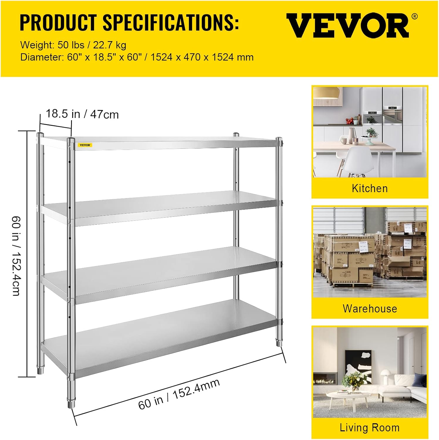 Versatile Uses: This stainless steel shelf is suitable to be put anywhere for you to organize your various items. Locating it in your kitchen for kitchenware is available. Putting it in the garage to store tires or car service kits is also a good idea. Our stainless steel shelf can help you tidy up your living environment.