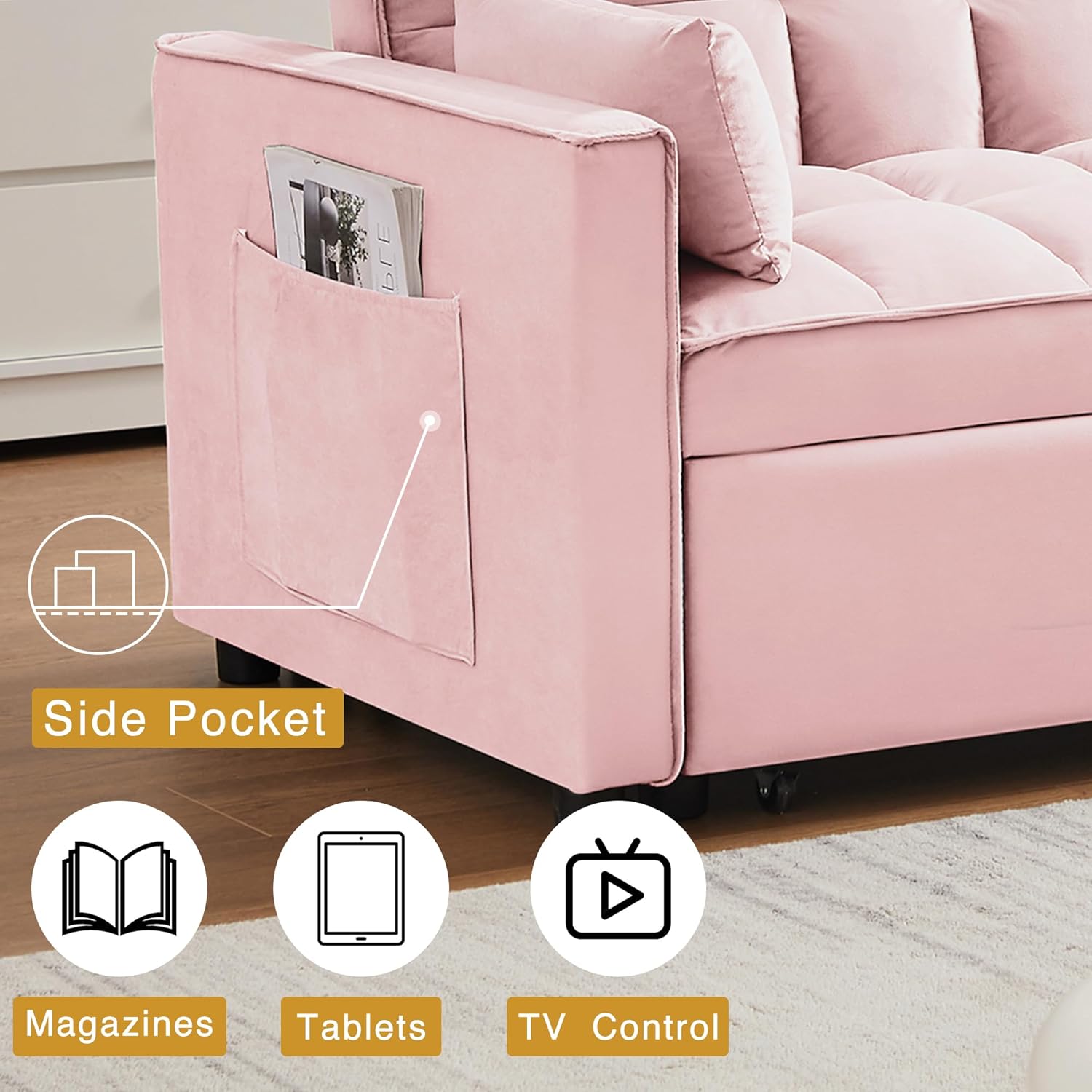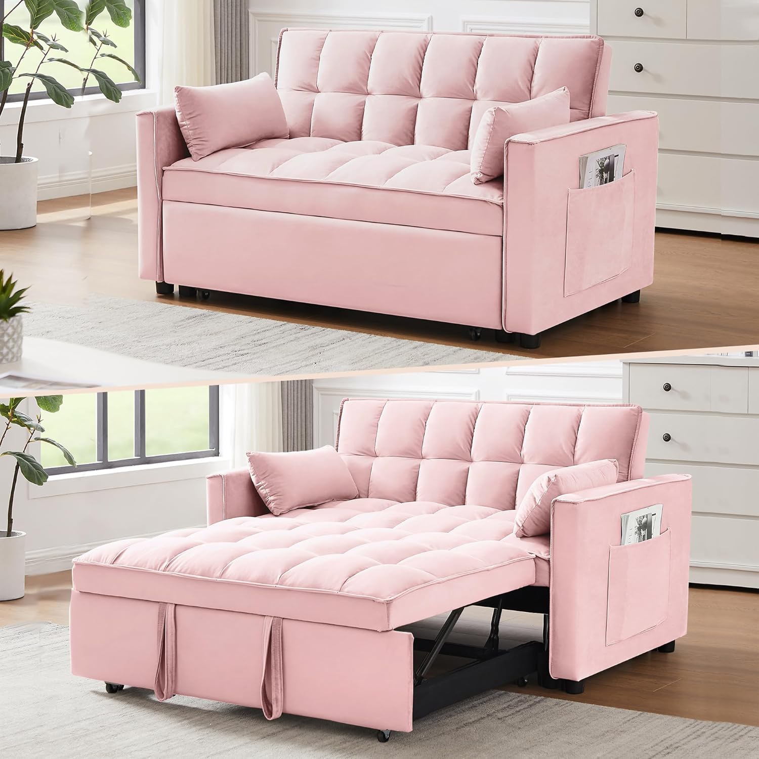 𝗖𝗼𝗻𝘃𝗲𝗿𝘁𝗶𝗯𝗹𝗲 𝗦𝗼𝗳𝗮 𝗕𝗲𝗱 : Pull the included handle and it slides out on its rollers to make loveseat sofa converts to sleeper bed easily, No matter what room it is, whether it is a large room or a small room, this is your best choice! The twin-sized sleeper bed can accommodate your overnight guests.