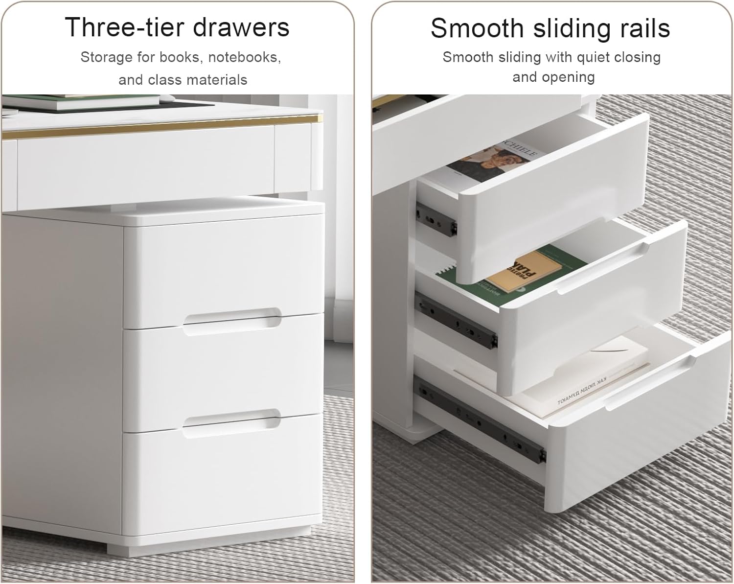 Intelligent Storage Design Multiple thoughtfully designed drawers provide exceptional storage solutions, perfectly concealing your stationery and documents while keeping your workspace tidy and organized. Each drawer is equipped with high-quality sliding rails, ensuring effortless opening and closing, allowing you to fully concentrate on your work and creativity.