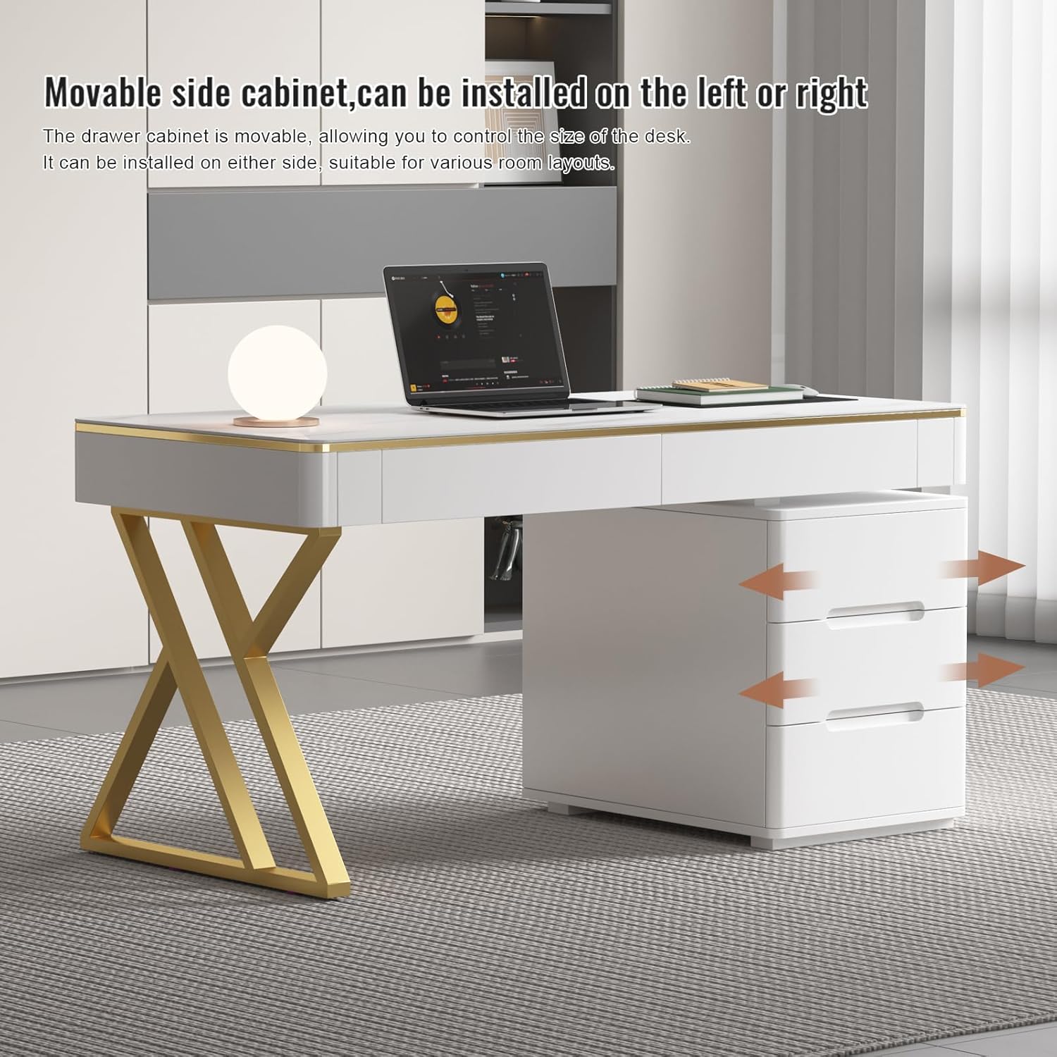 Multi-Scene Applicability This desk is perfectly suited for upscale home offices, modern studies, or creative studios. Its minimalist yet luxurious design enhances your quality of life, helping you take confident steps in your pursuit of excellence, making it an ideal place for work and creativity, and inspiring endless ideas.