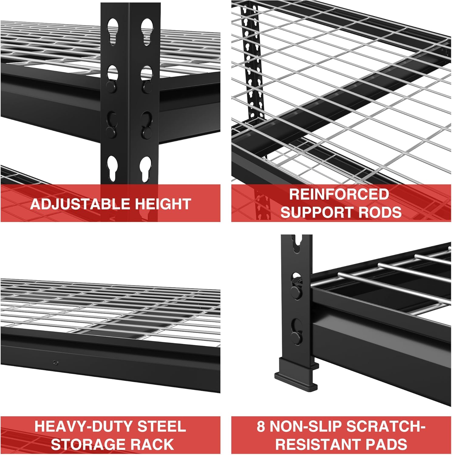 【4000 lbs Load Capacity】The maximum capacity is up to 4000 lbs totally, 800 lbs per shelf, which can store much more stuff and tools in your garage or warehouse.