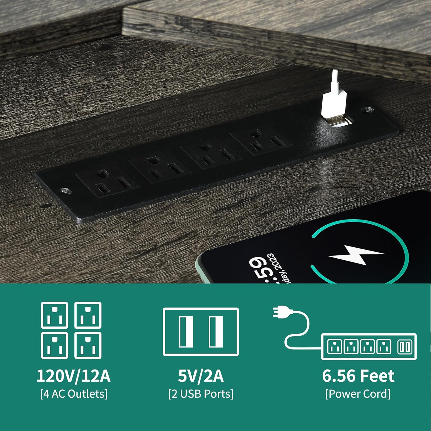 Convenient Charging Station: YITAHOME L shaped desk with drawers features 2 USB ports, 4 power outlets & a 6.56ft power cord to charge your computer, laptop, phone, tablet, printer, gaming gear and other devices. You can experience the convenience of power access while working or gaming