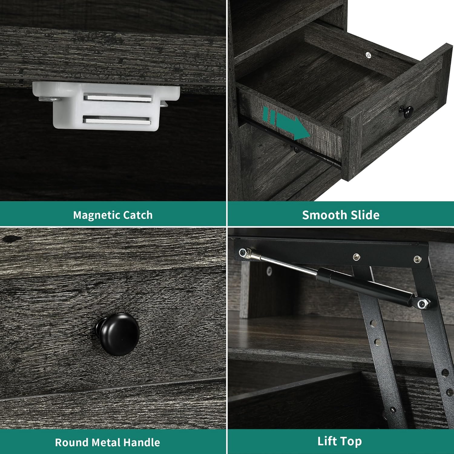 Lift top, Sit to Stand: Lift the right tabletop of L shaped computer desk to work standing up after long hours of sitting, which relieves your working stress. The monitor riser can help you develop a correct posture to get rid of neck pain & backache