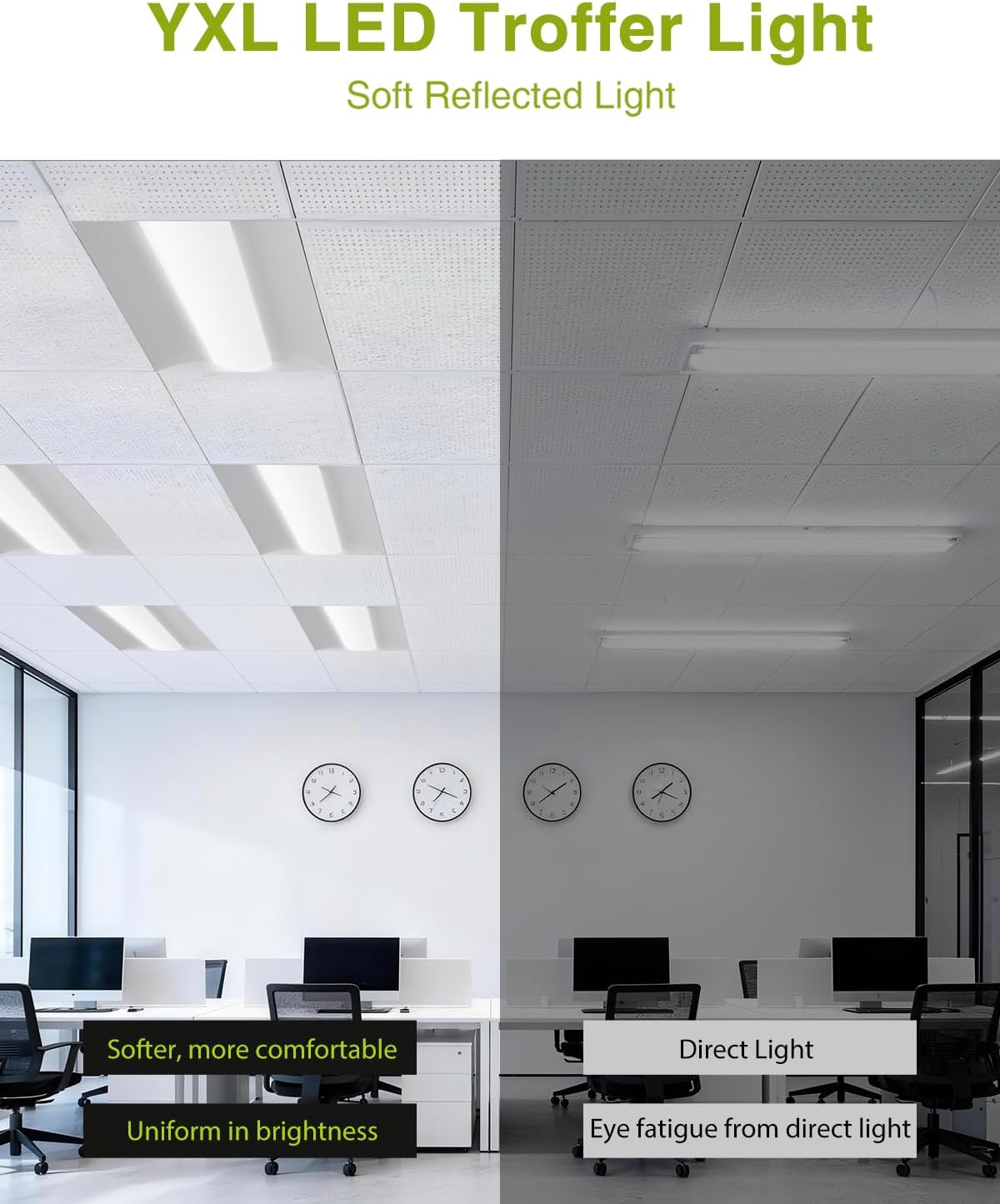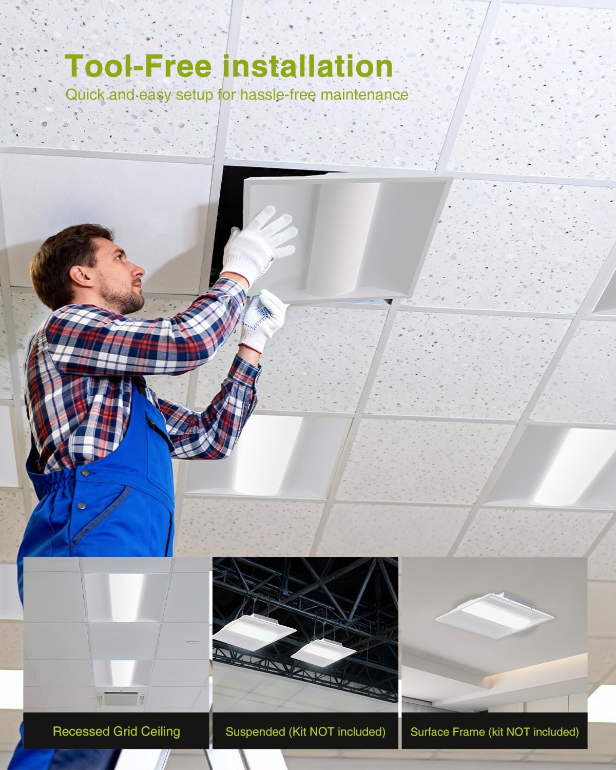 🔥 Selectable CCT – The YXL LED center basket troffer light delivers instant bright light with various color temperature options (3000K/3500K/4000K/5000K/6500K) to achieve optimal focus and productivity. During installation, use the slide switch on the back of the panel to select your preferred color temperature.